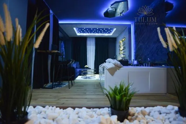 Tulum Luxury Suites posiada również aneks kuchenny. Ponadto obiekt noclegowy wyposażono w minibar. Apartament o powierzchni 52 m^2 znajduje się w odległości krótkiego spaceru od dworca autobusowego Stanica Dolno Nerezi. Dzięki luksusowym udogodnieniom, w tym tarasowi i basenowi, goście mogą odpocząć i zrelaksować się. Obiekt oferuje prywatny basen kąpielowy oraz taras.